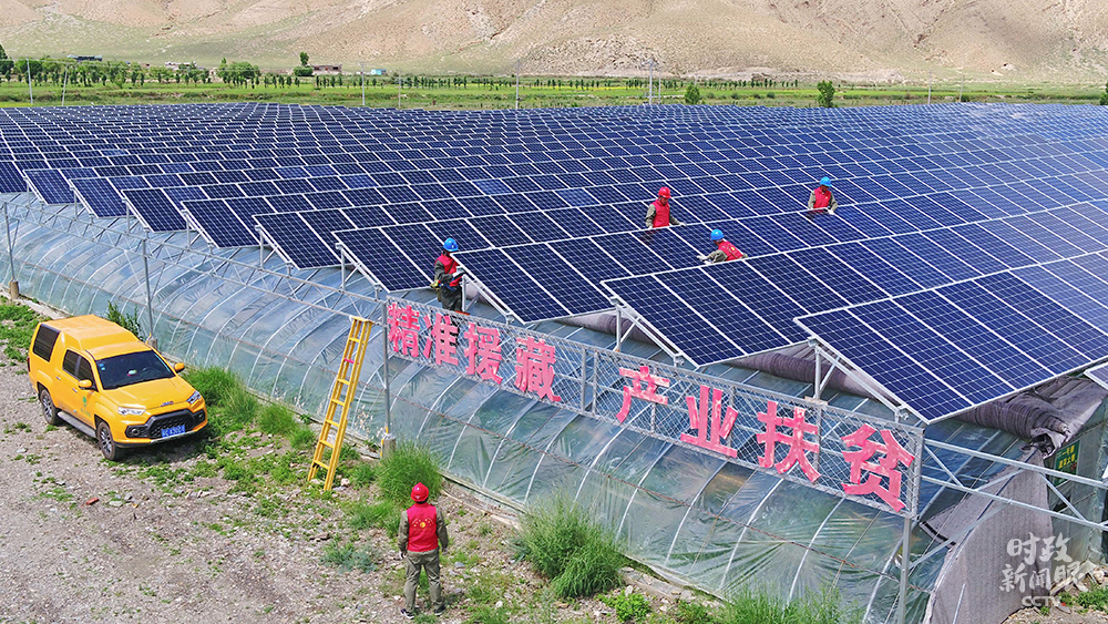 湖北襄陽(yáng)某供電公司援藏幫扶工作人員檢修光伏發(fā)電設(shè)備,解決當(dāng)?shù)仞B(yǎng)殖戶(hù)和種植戶(hù)用電需求。