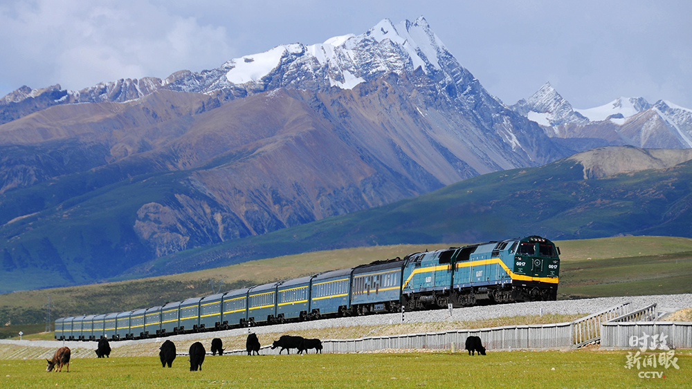 青藏鐵路列車(chē)運(yùn)行在念青唐古拉山腳下。