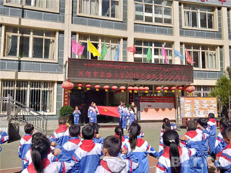 圖為昌都市實(shí)驗(yàn)小學(xué)在學(xué)校操場開展新少先隊(duì)員入隊(duì)儀式