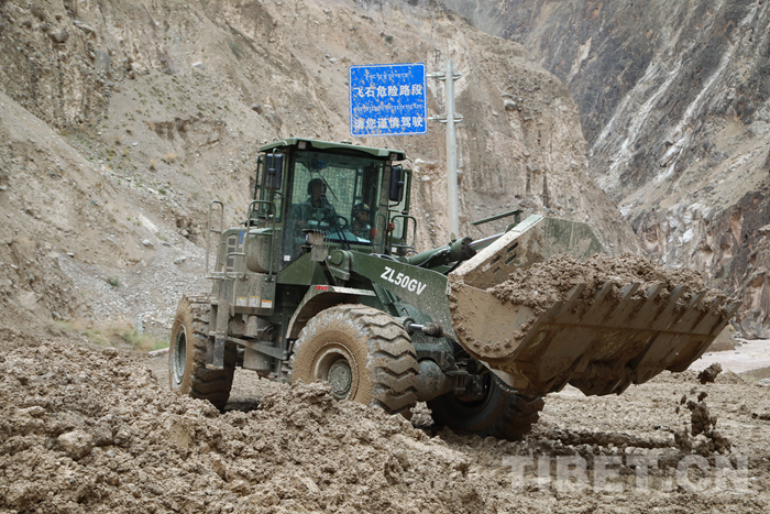 武警官兵緊急搶通川藏線泥石流災(zāi)害道路