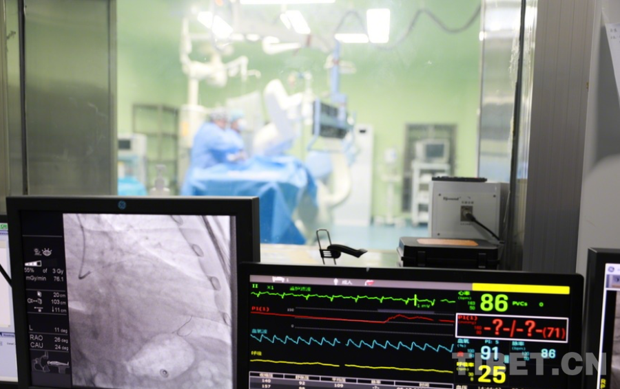制定好手術方案后,陰赪茜馬上開始為患者施行微創(chuàng)心臟介入手術,經過右側前臂的橈動脈將微創(chuàng)的手術器械抵達病變的心臟血管。