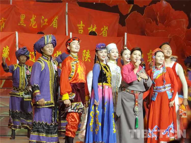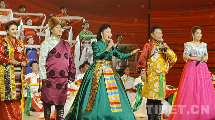 “來了!來了!吉祥的日子來了!升起了!升起了!幸福的太陽升起來了!”“我們雙手捧起圣潔的銀碗!我們雙手托起吉祥的哈達!我們唱起最美的贊歌!感恩黨,感恩祖國,感恩幸福生活!”文藝演出在大型歌舞表演《扎西德勒》中拉開序幕。