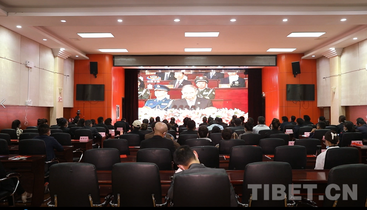 圖為日喀則市各族各界干部群眾集中收看慶祝大會實(shí)況 來源:日喀則市廣播電視臺