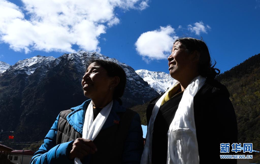 卓嘎(左)、央宗姐妹倆在一起(2017年10月29日攝)。新華社記者 普布扎西 攝