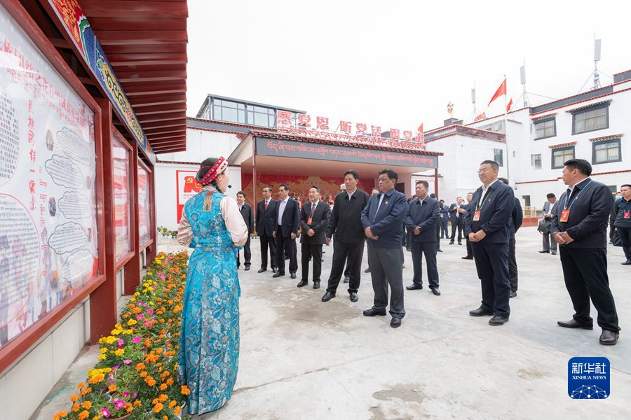8月20日,中央代表團(tuán)山南、日喀則分團(tuán)帶著以習(xí)近平同志為核心的黨中央的深切關(guān)懷和全國(guó)人民的深情祝福,分別看望慰問當(dāng)?shù)馗髯甯鹘绺刹咳罕?。這是全國(guó)人大常委會(huì)副委員長(zhǎng)、中央代表團(tuán)副團(tuán)長(zhǎng)白瑪赤林率日喀則分團(tuán)來(lái)到日喀則桑珠孜區(qū)城北街道辦事處江洛康薩社區(qū),視察民族團(tuán)結(jié)創(chuàng)建和新時(shí)代文明實(shí)踐中心建設(shè)工作情況。新華社記者 翟健嵐 攝