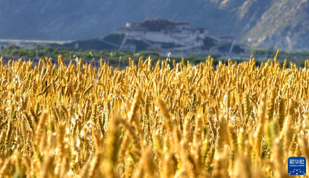 在金色麥田里遙望布達(dá)拉宮(2009年8月21日攝)。新華社記者 普布扎西 攝