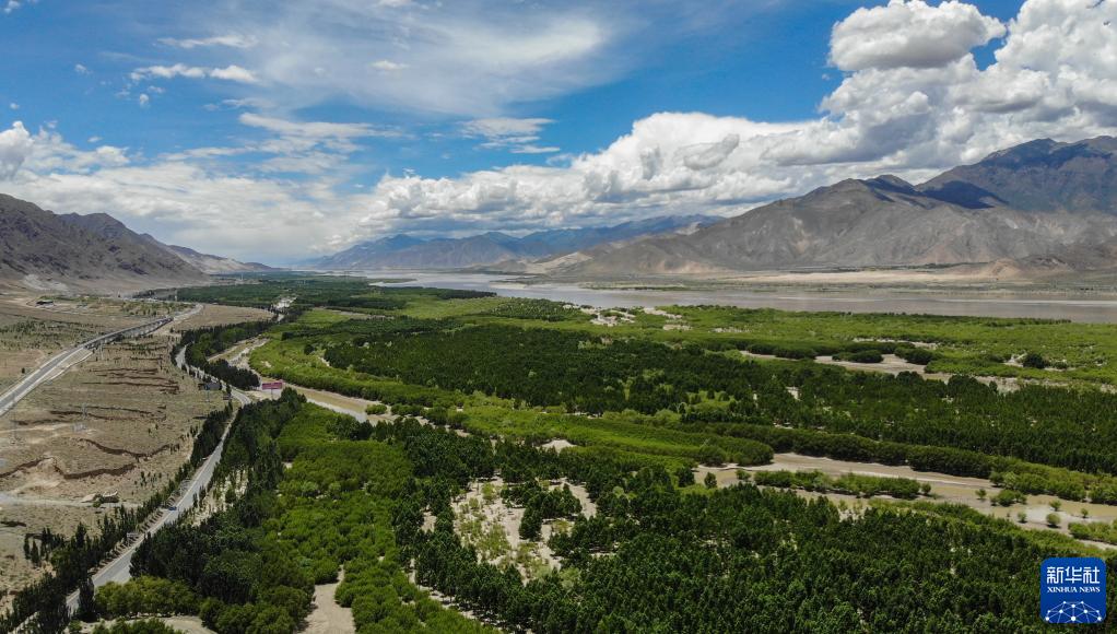 雅魯藏布江山南段防護(hù)林(2020年6月27日攝,無(wú)人機(jī)照片)。新華社記者 晉美多吉 攝