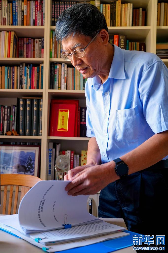4月28日,李純民在天津家中整理助學(xué)材料。新華社記者 黃臻 攝