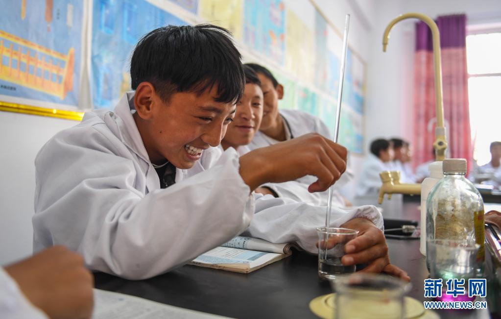 西藏昌都市芒康縣鹽井中學學生在上化學課(2019年6月6日攝)。新華社記者 晉美多吉 攝
