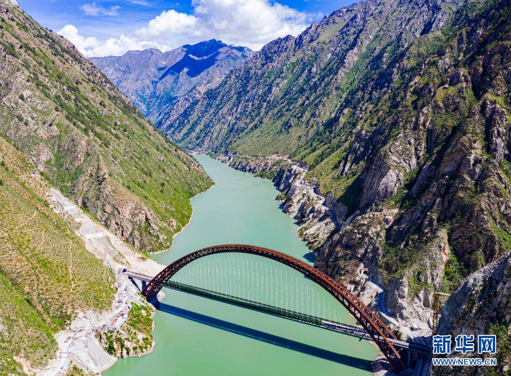 6月25日,全長435公里、設計時速160公里的拉林鐵路建成通車,西藏首條電氣化鐵路建成,同時復興號實現對31個省區(qū)市全覆蓋。這是試運行的復興號列車行駛在藏木特大橋(無人機照片,6月17日攝)。新華社記者 普布扎西 攝