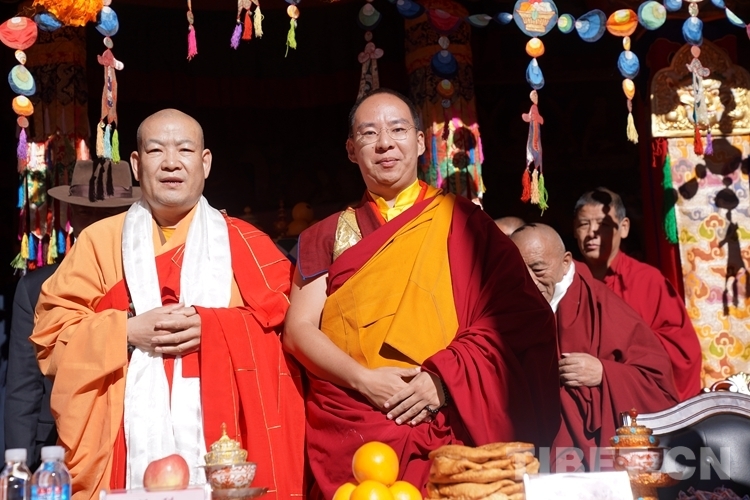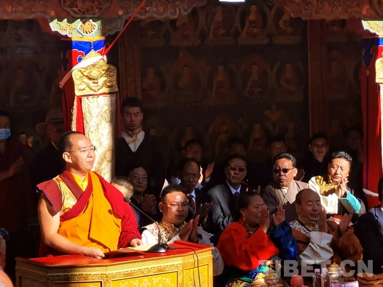 旦科代表西藏自治區(qū)黨委、政府講話:考取“嘎欽”佛學(xué)學(xué)位,是班禪額爾德尼?確吉杰布精進(jìn)學(xué)識(shí)、弘法利生畢生事業(yè)中的關(guān)鍵環(huán)節(jié),是二十五年來勤學(xué)苦修、?;劬阍龅闹苯芋w現(xiàn),是在宗教修為上全面成熟的重要標(biāo)志,更是習(xí)近平總書記和黨中央教育培養(yǎng)的重大成果。這是扎什倫布寺的一大喜事,是藏傳佛教界的一大盛事,是寺廟僧尼、信教群眾期盼已久的一件大事。