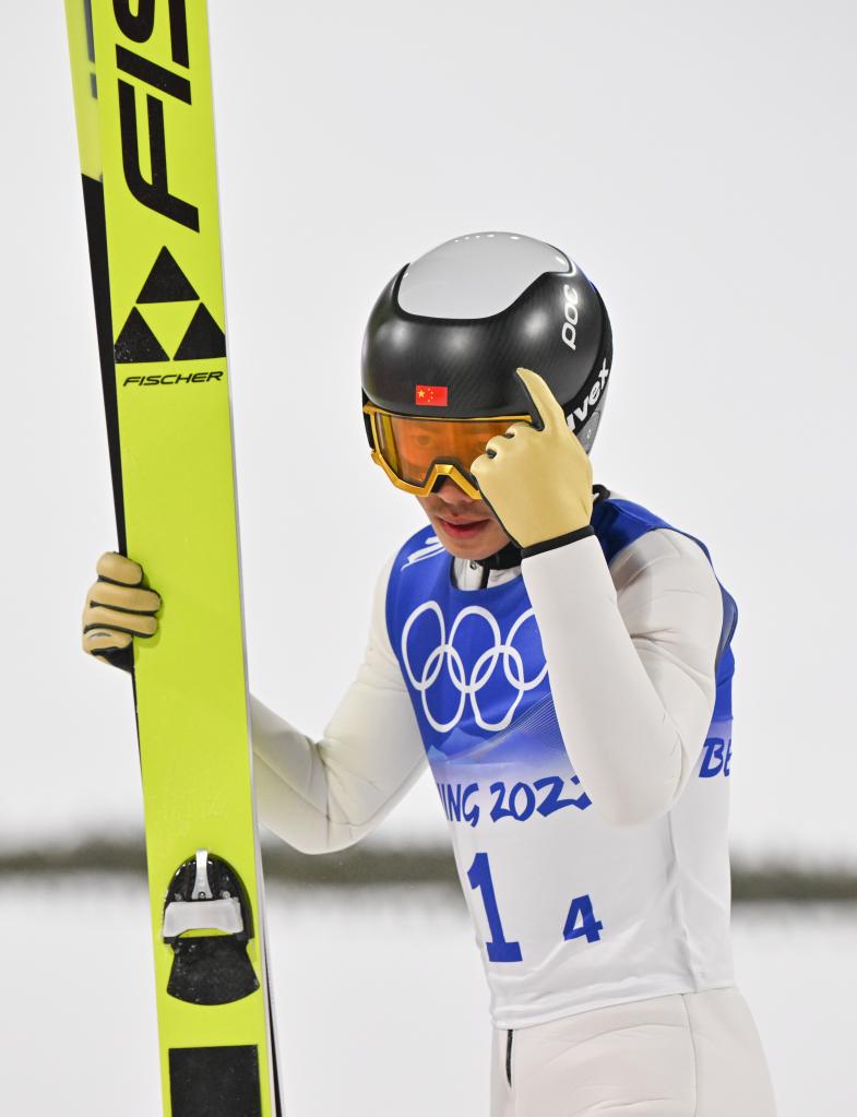 2月6日,中國(guó)選手趙嘉文在北京2022年冬奧會(huì)跳臺(tái)滑雪混合團(tuán)體比賽中。新華社記者姜克紅攝