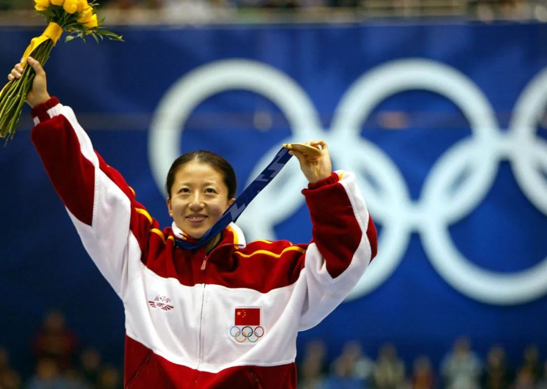 2002年2月16日,在鹽湖城第19屆冬季奧運會短道速滑女子500米決賽中,中國選手楊揚奪得金牌, 實現了中國在冬奧會上金牌的“零的突破”。圖為楊揚在領獎臺上。新華社記者趙迎新攝