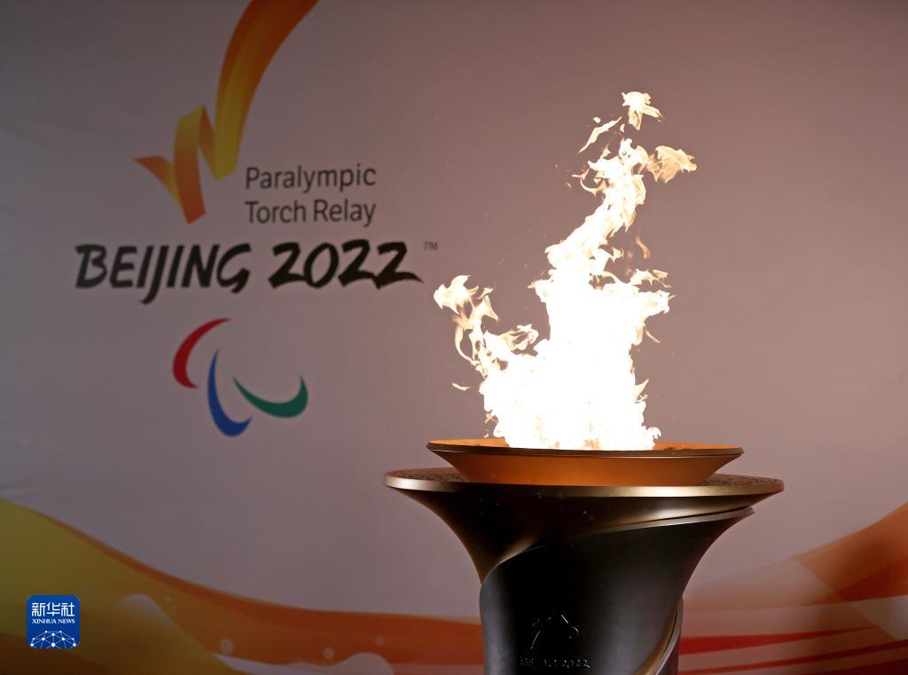 這是2月28日拍攝的點燃后的火種盆。北京2022年冬殘奧會的一路火種當?shù)貢r間2月28日在英國曼德維爾采集。這一來自殘奧運動發(fā)源地的火種隨后將和來自北京、延慶、張家口三個賽區(qū)的8路火種匯集,生成北京冬殘奧會的官方火種。新華社記者 李穎 攝