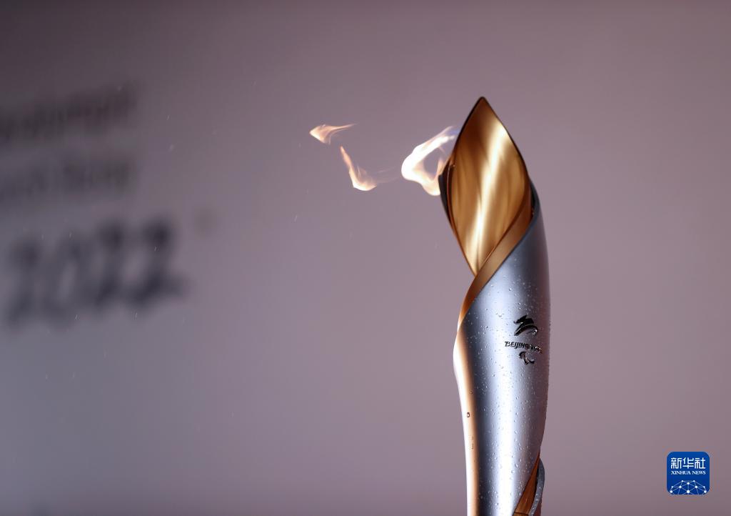 這是2月28日在火種采集儀式上拍攝的北京冬殘奧會火炬。 新華社記者 李穎 攝
