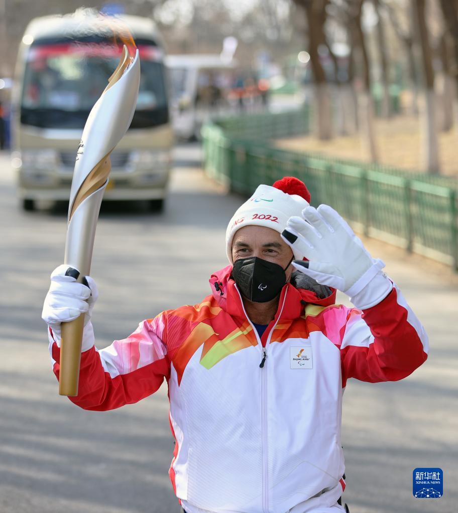 3月3日,火炬手國(guó)際殘奧委會(huì)副主席杜安·卡勒在傳遞火炬。新華社記者 杜瀟逸 攝