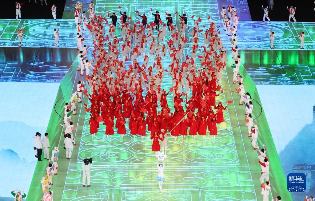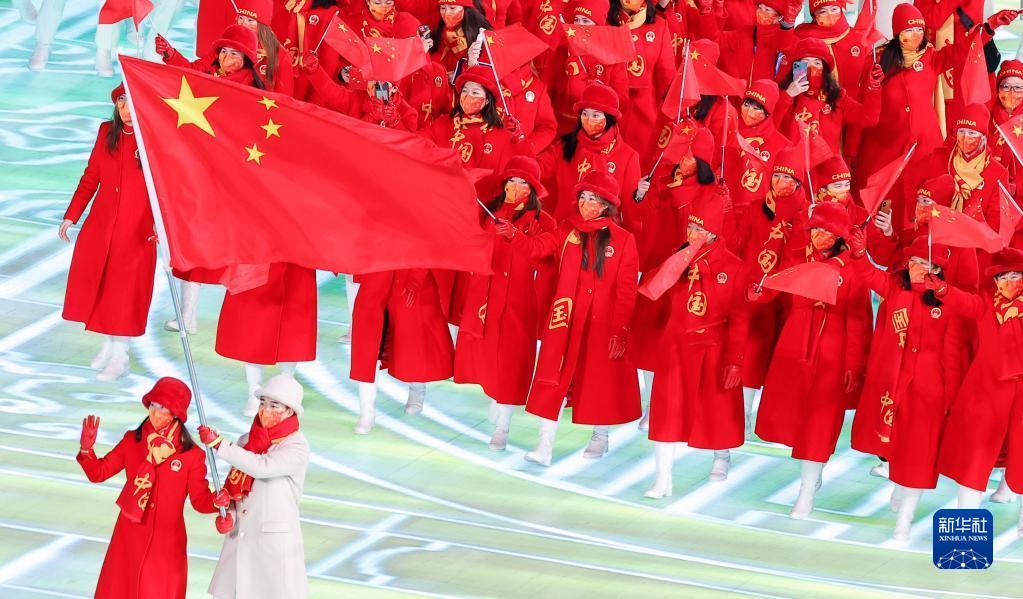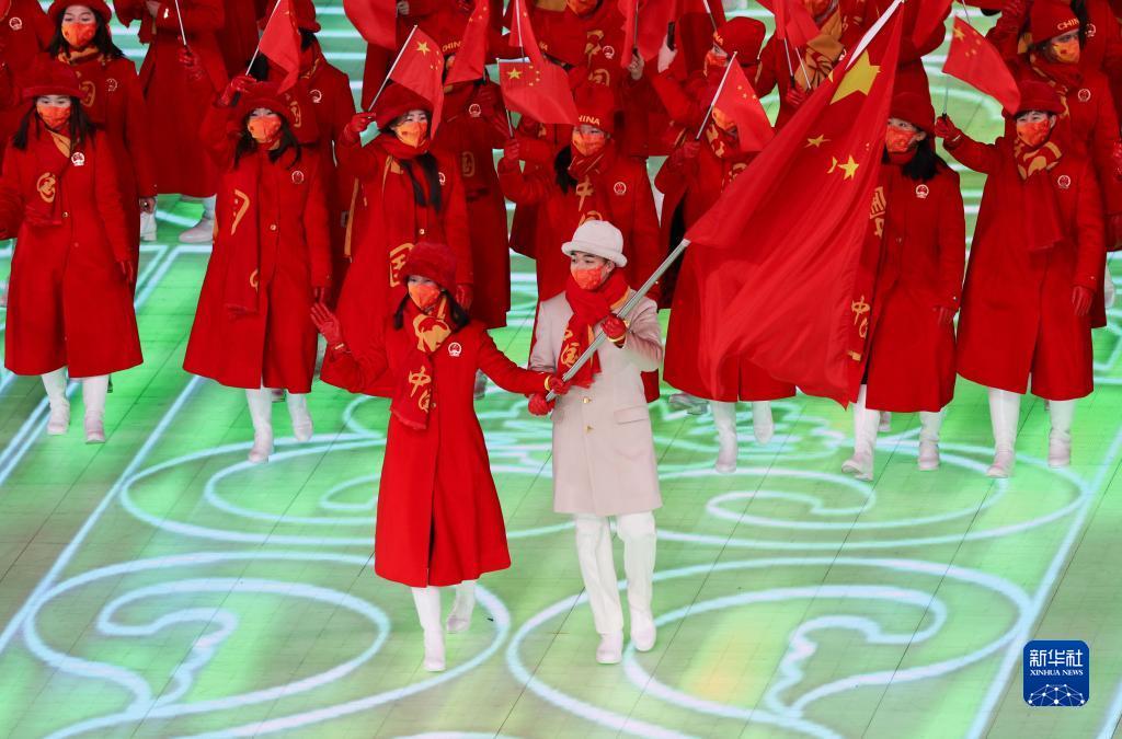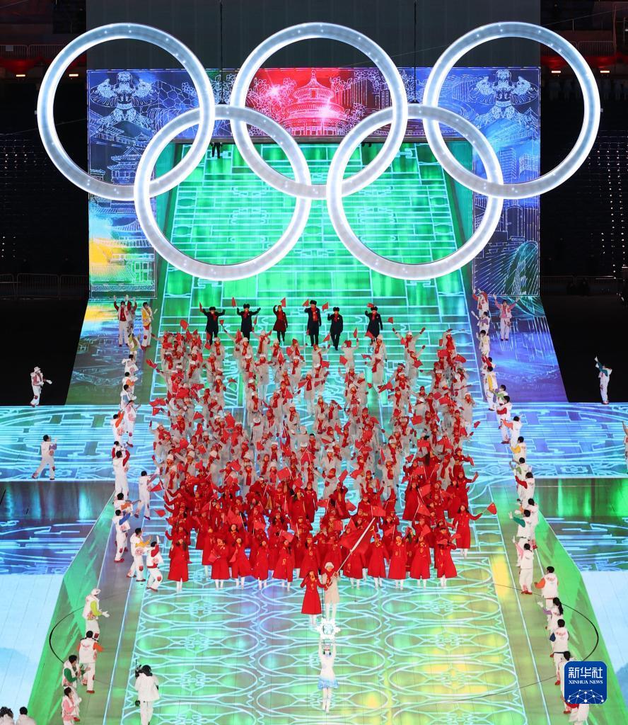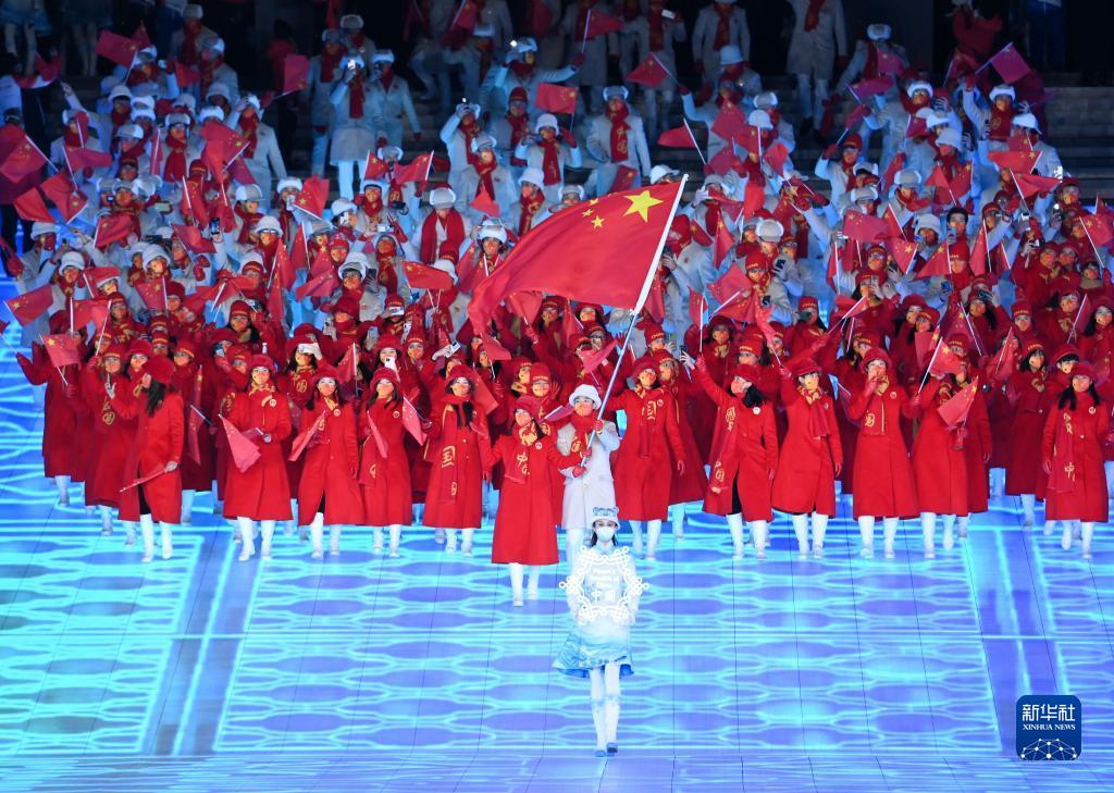 2月4日晚,第二十四屆冬季奧林匹克運動會開幕式在北京國家體育場舉行。這是中國代表團在開幕式上入場。新華社記者 丁旭 攝