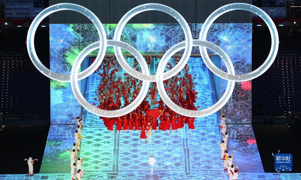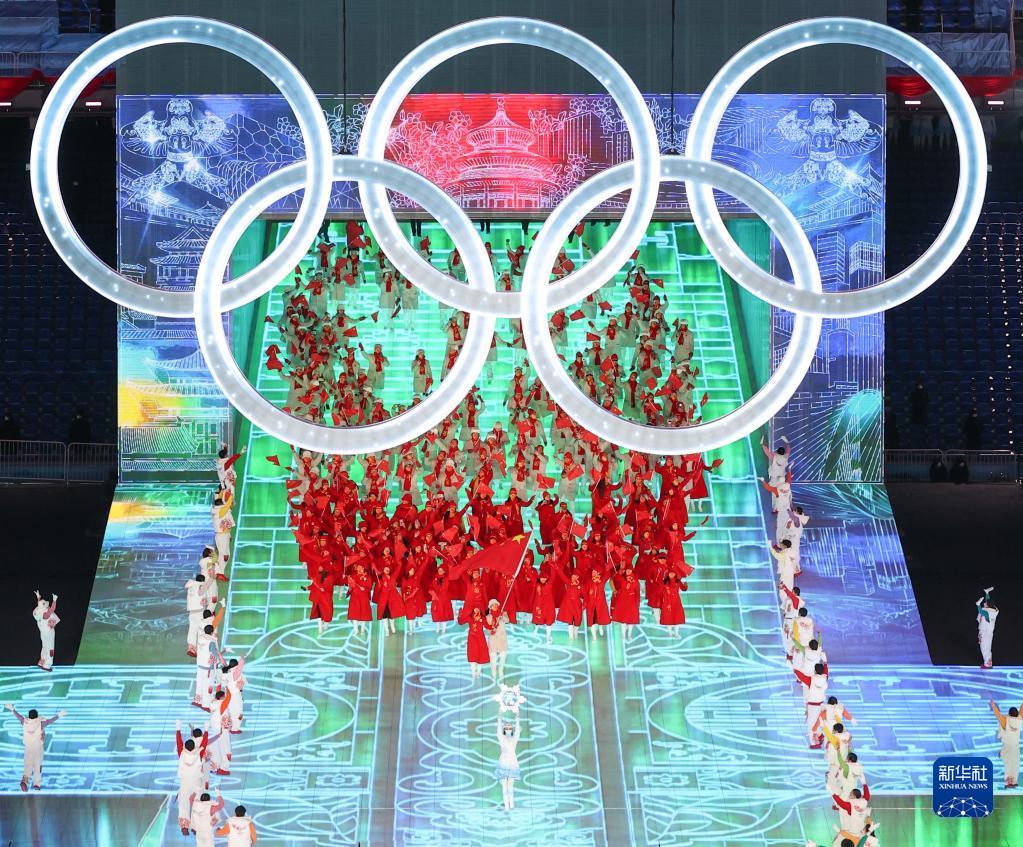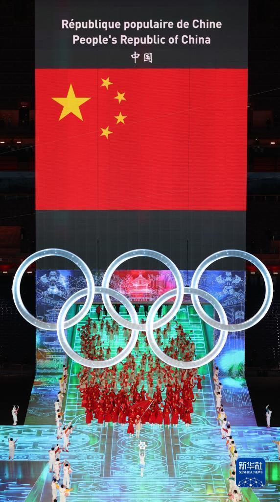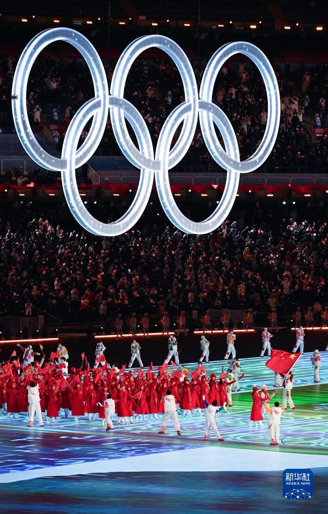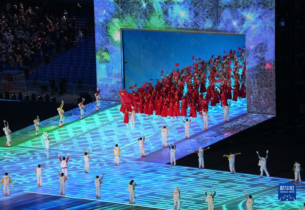 2月4日晚,第二十四屆冬季奧林匹克運動會開幕式在北京國家體育場舉行。這是中國代表團在開幕式上入場。新華社記者 楊磊 攝