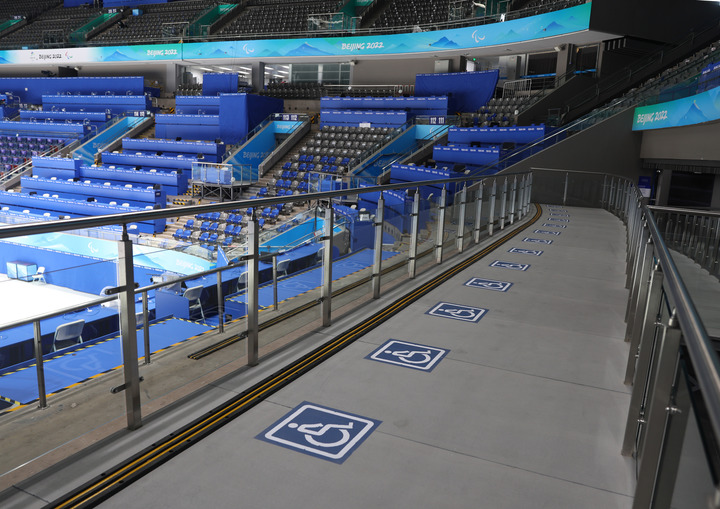 3月1日,國家體育館看臺(tái)席的無障礙坐席。新華社發(fā)(胡星宇攝)