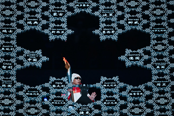 北京冬殘奧會(huì)開幕式上,曾經(jīng)獲得4枚殘奧會(huì)金牌的視障運(yùn)動(dòng)員李端作為最后一棒火炬手,高擎“飛揚(yáng)”火炬走上點(diǎn)火臺(tái),幾番摸索,均未成功。此時(shí),一聲響亮的“加油”聲劃破國家體育場“鳥巢”寂靜的夜空。在全場觀眾的吶喊鼓勁聲中,李端穩(wěn)穩(wěn)地將火炬插入主火炬臺(tái)“大雪花”之中。