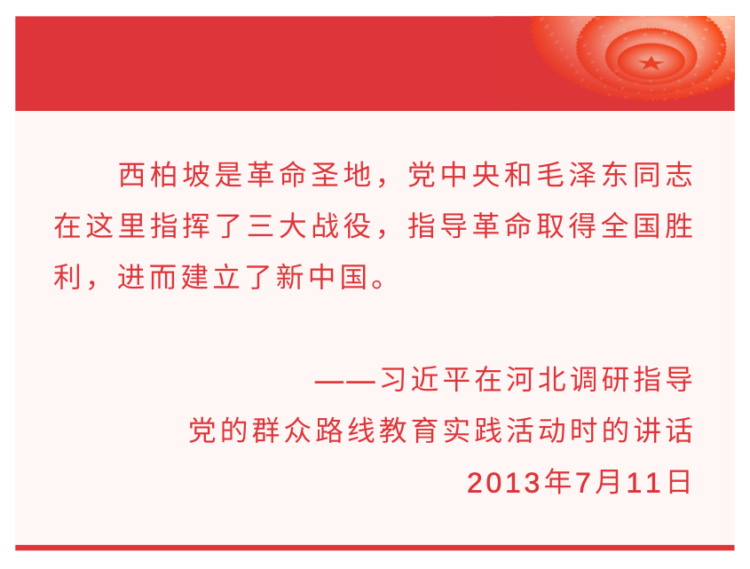 中國(guó)共產(chǎn)黨的百年輝煌歷程中,位于河北省平山縣的西柏坡是一個(gè)耀眼的紅色地標(biāo),有著“新中國(guó)從這里走來”的美譽(yù)——