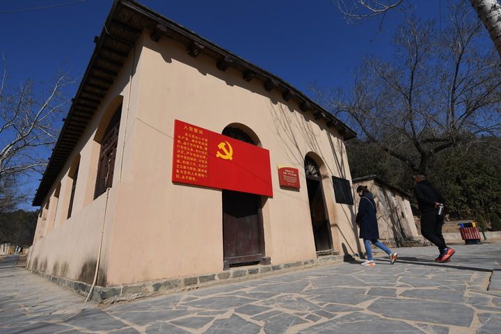 游客進(jìn)入河北省平山縣西柏坡中國(guó)共產(chǎn)黨七屆二中全會(huì)會(huì)址參觀(2019年3月6日攝)。新華社記者 牟宇 攝