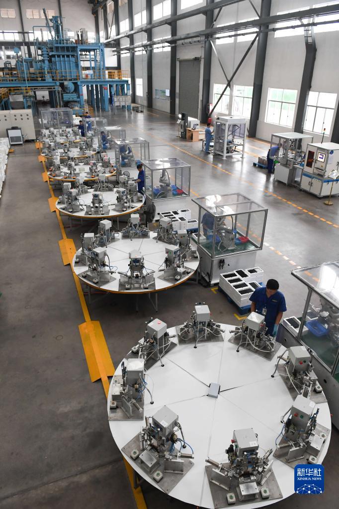 江西金力永磁科技股份有限公司的工人在車間內(nèi)工作(2019年5月20日攝)。新華社記者 周密 攝