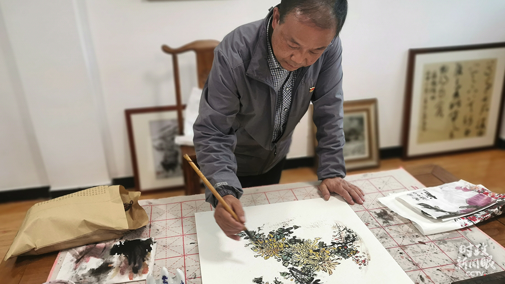 55歲的魏真盈是社區(qū)書(shū)畫(huà)室的國(guó)畫(huà)指導(dǎo)老師。(總臺(tái)央視記者覃思、馬超拍攝)
