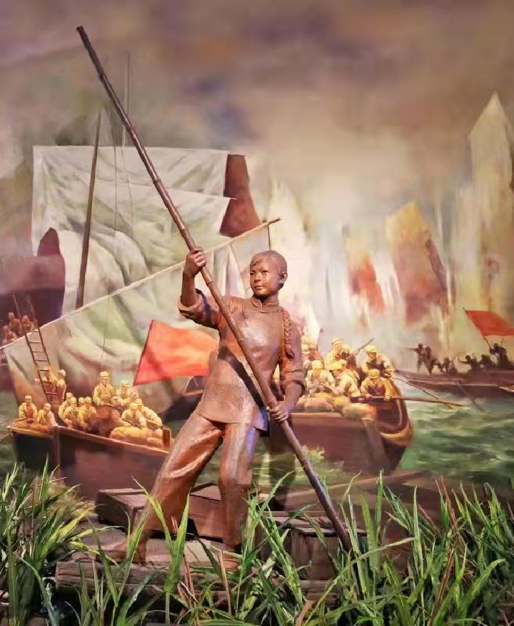 渡江戰(zhàn)役紀(jì)念館里以馬毛姐為原型設(shè)計(jì)的雕塑。(渡江戰(zhàn)役紀(jì)念館供圖)