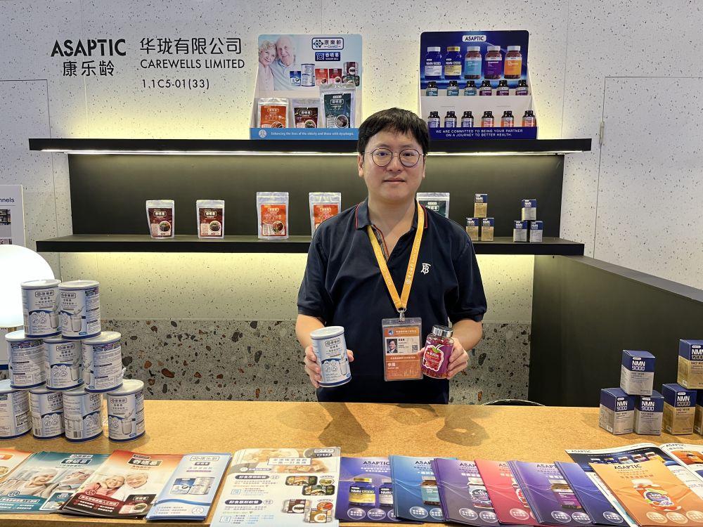 今年的“香港產(chǎn)品展區(qū)”,除了有家喻戶曉的香港品牌,如李錦記、澳至尊、八珍等,還引進(jìn)了一些新展商,比如華瓏有限公司帶來的香港初創(chuàng)品牌康樂齡吞咽易。
