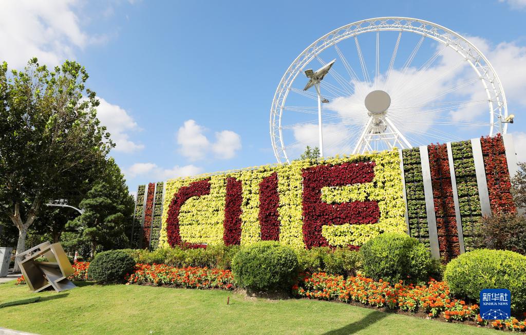 這是國家會(huì)展中心(上海)周邊的進(jìn)博會(huì)主題綠化裝飾(10月5日攝)。新華社記者 方喆 攝