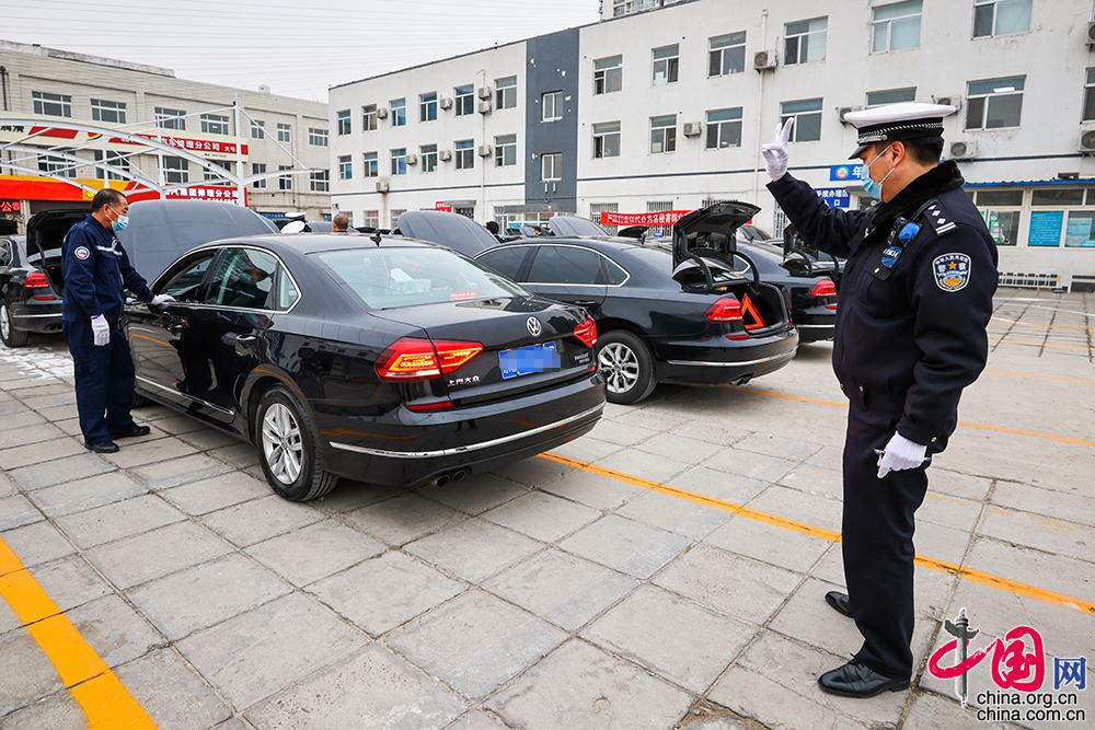 專業(yè)檢查人員車輛進行登記。中國網(wǎng)記者 鄭亮攝