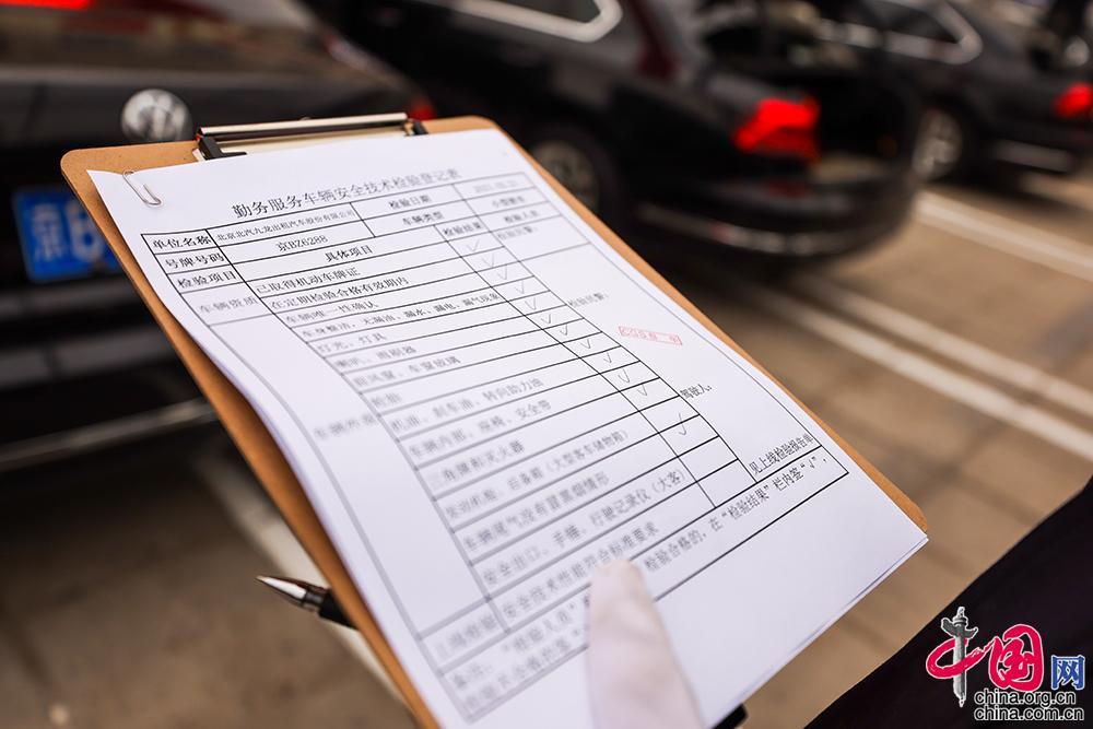 專業(yè)檢查人員逐一對車內(nèi)安全帶進行檢查并記錄。中國網(wǎng)記者 鄭亮攝