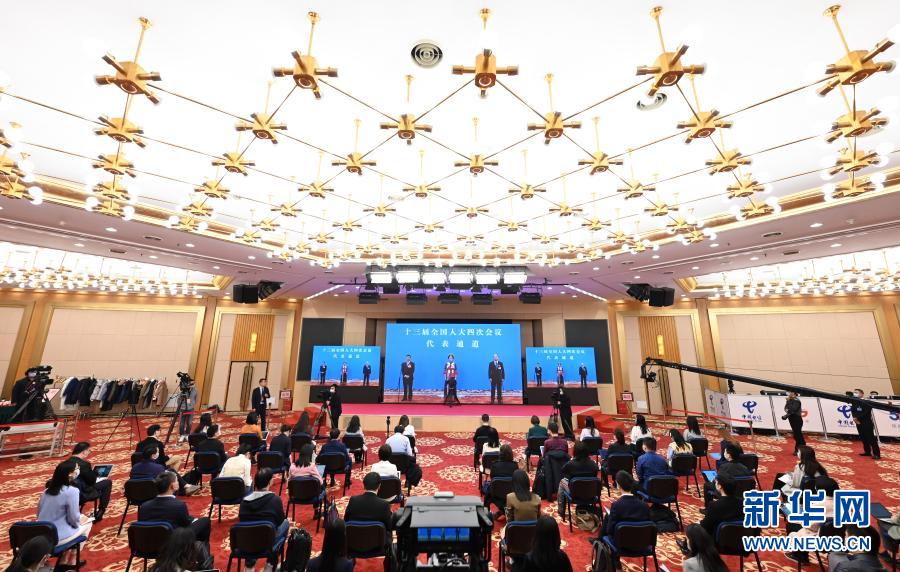3月8日,第十三屆全國人民代表大會(huì)第四次會(huì)議舉行第二場(chǎng)“代表通道”采訪活動(dòng)。這是記者在分會(huì)場(chǎng)通過網(wǎng)絡(luò)視頻方式采訪。