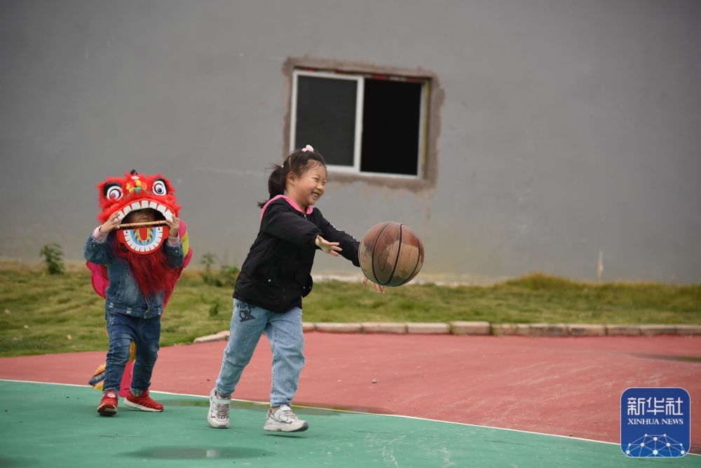 小女兒(右二)生日當(dāng)天,楊興義為她買了最愛的玩具(1月25日攝)。新華社記者田建川攝