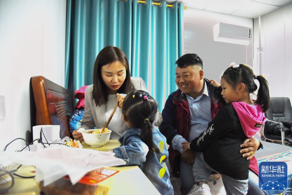 最近,他的妻子和兩個(gè)女兒來到項(xiàng)目部所在的廣東省汕尾市海豐縣,一家人在板房宿舍里團(tuán)聚了。