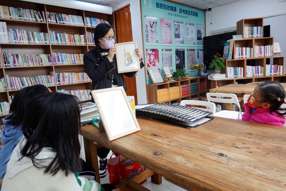 大年初四,陽光透過玻璃屋頂,灑滿金龜自然書房。偌大的書房里,各類書籍?dāng)[放得錯(cuò)落有致。店長沈龍已備好紙張、畫筆、參考書籍等,靜待十幾組家庭學(xué)員前來參加親子閱讀、水彩繪畫活動(dòng)。這些家庭有的來自附近街道,有的遠(yuǎn)道駕車而來。
