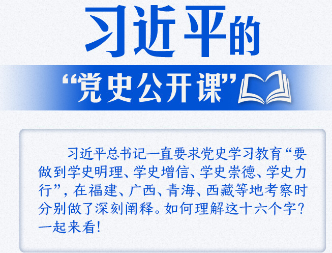 習(xí)近平總書記一直要求黨史學(xué)習(xí)教育“要做到學(xué)史明理、學(xué)史增信、學(xué)史崇德、學(xué)史力行”,在福建、廣西、青海、西藏等地考察時分別做了深刻闡釋。