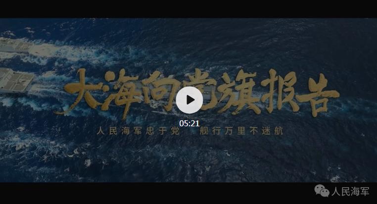 “潛航大洋,他們是捍衛(wèi)國家主權(quán)的殺手锏;翱翔海天,他們是維護(hù)祖國安寧的急先鋒;蛟龍突擊,他們是攻無不克的奪命刃……”在人民海軍成立72周年之際,海軍向全社會公開發(fā)布主題宣傳片《大海向黨旗報告》,慶祝黨的百年華誕。通過展現(xiàn)海軍一線部隊忠誠使命、英勇善戰(zhàn)、建功海洋的精神追求,讓你領(lǐng)略新時代海軍官兵的家國情懷,讓你感悟人民海軍向海圖強的豪情壯志。(視頻:海軍政治工作部宣傳局、新華社解放軍分社 聯(lián)合攝制 /文字: 李珂嘉賀 孫飛 /編輯:高澤明)