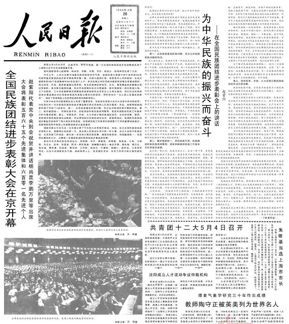 人民日?qǐng)?bào)關(guān)于第一次全國(guó)民族團(tuán)結(jié)進(jìn)步表彰大會(huì)的報(bào)道。