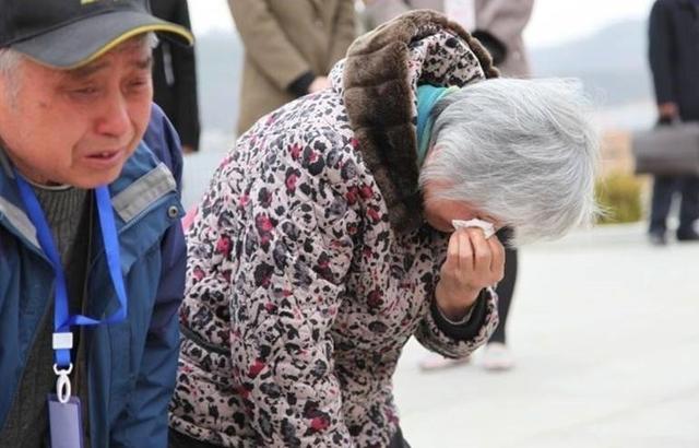 (圖為終于找到親人的烈屬淚灑當場。)