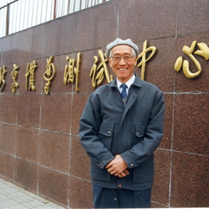上世紀(jì)90年代,陸元九在北京慣導(dǎo)測試中心調(diào)研時(shí)在門前留影。新華社發(fā)(中國航天科技集團(tuán)供圖)