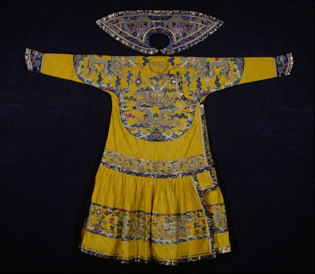 △一號(hào)展廳:康熙皇帝夏季所穿的彩云金龍紋男單朝袍
