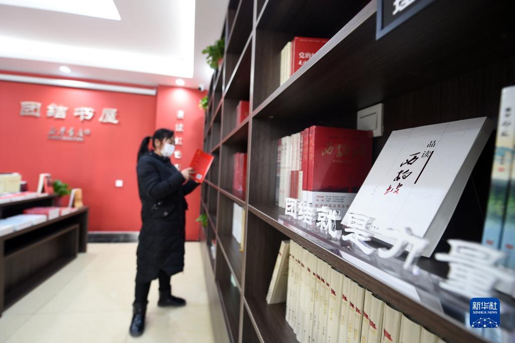 1月28日,在河北省平山縣西柏坡鎮(zhèn)北莊村團(tuán)結(jié)書屋,工作人員在整理書籍。新華社記者 駱學(xué)峰 攝
