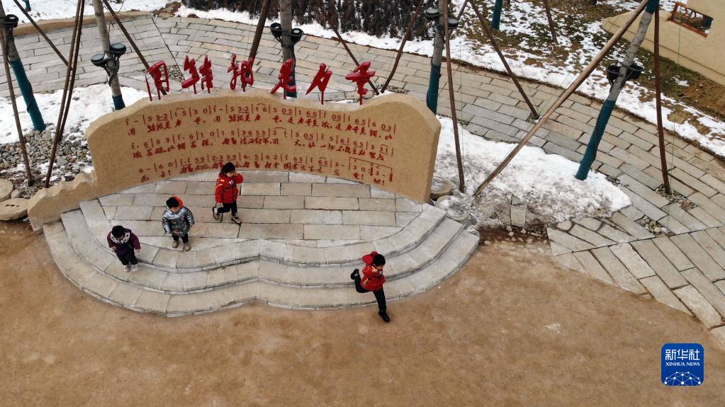 1月28日,小朋友在河北省平山縣西柏坡鎮(zhèn)北莊村(無人機(jī)照片)。新華社記者 駱學(xué)峰 攝