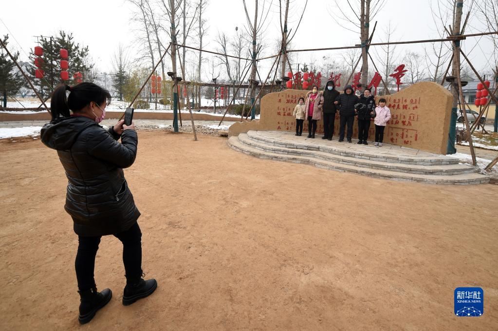 1月28日,游客在河北省平山縣西柏坡鎮(zhèn)北莊村游玩拍照。新華社記者 駱學(xué)峰 攝