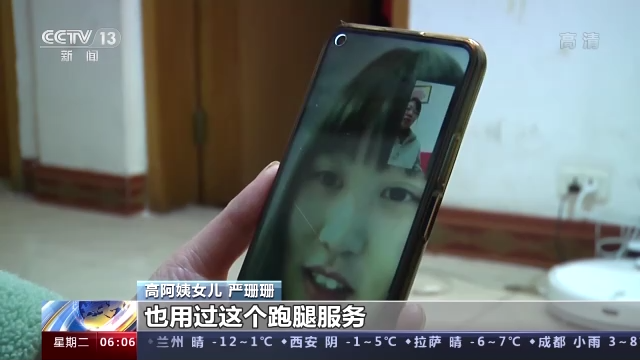 高阿姨女兒 嚴(yán)珊珊:她在手機(jī)上只用App點(diǎn)一下,她就不用彎腰了,因?yàn)橹拔以趪鴥?nèi)也用過這個(gè)跑腿服務(wù),挺好的,想著我又不在國內(nèi),想著用一下,就正好讓小哥教一下我媽媽怎么用。