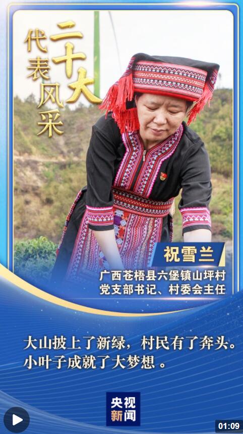 “二十大代表風(fēng)采”一起來認(rèn)識廣西蒼梧縣山坪村黨支部書記、村委會主任祝雪蘭。