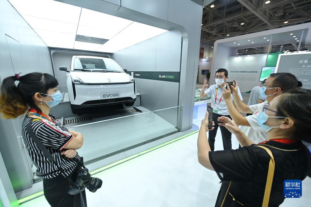 在福建廈門舉行的第二十二屆中國國際投資貿(mào)易洽談會(huì)的寧德時(shí)代展位,來訪者參觀新能源汽車換電過程(2022年9月8日攝)。新華社記者 林善傳 攝