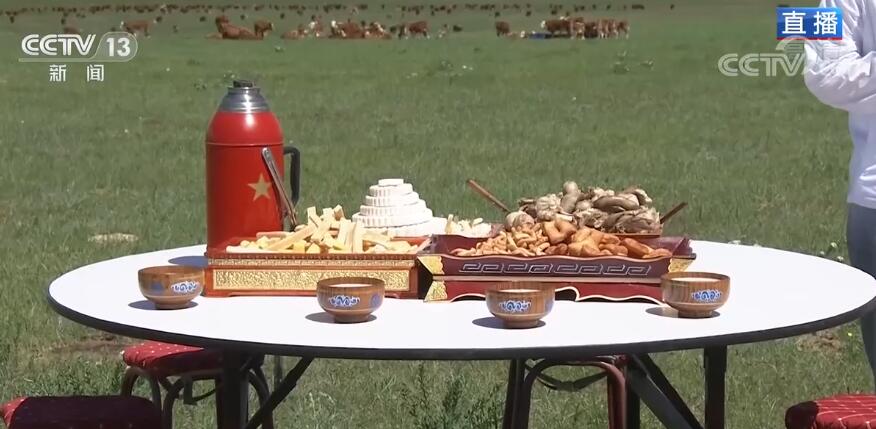 大家知道我們《大美邊疆行》來這里拍攝,都非常熱情,還特意備下了盛宴,為了更好地展示,我們也特意從蒙古包里搬到了草原上??梢钥吹阶雷由弦呀?jīng)準(zhǔn)備上了花式各樣的奶豆腐,還有草原上必不可少的手把肉、奶茶。今天通過我們的鏡頭,給全國(guó)的觀眾朋友發(fā)出一份邀請(qǐng),希望大家有時(shí)間能夠來到烏拉蓋,欣賞大美的草原風(fēng)光的同時(shí),體驗(yàn)一把牧民當(dāng)下的幸福生活。